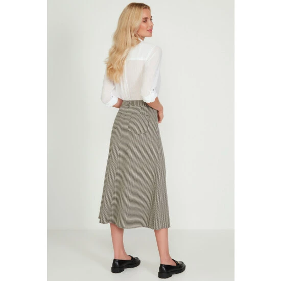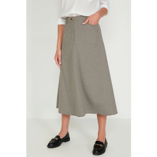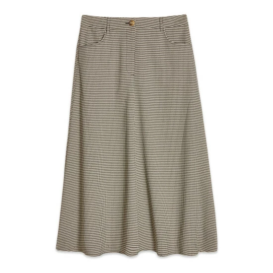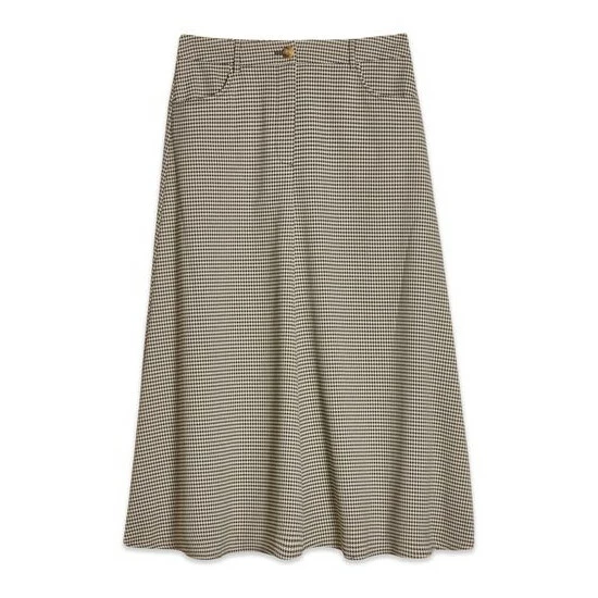 This A-line skirt features a midi length and belt loops. Finished with a fine dogtooth check print, pair with a white shirt for a classic look.