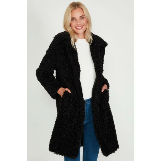 Wrap up this season with this cosy borg coat. Coming in a midi length, this coat features front pockets and a collar neckline. The perfect coat for staying cosy and stylish this a/w.