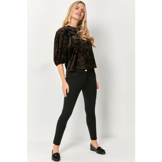 These black ponte trousers are designed in a petite skinny fit with lift and shape technology. Finished with a button and fly fastening, belt loops and pockets.