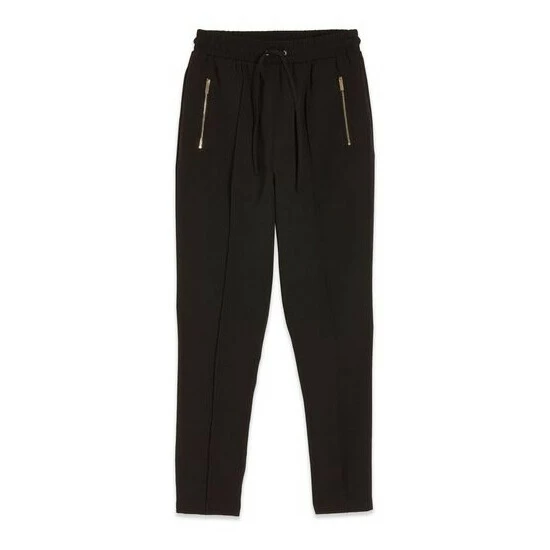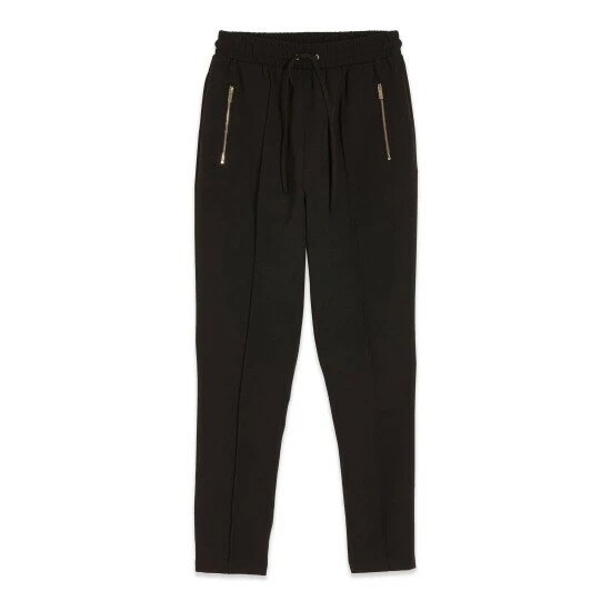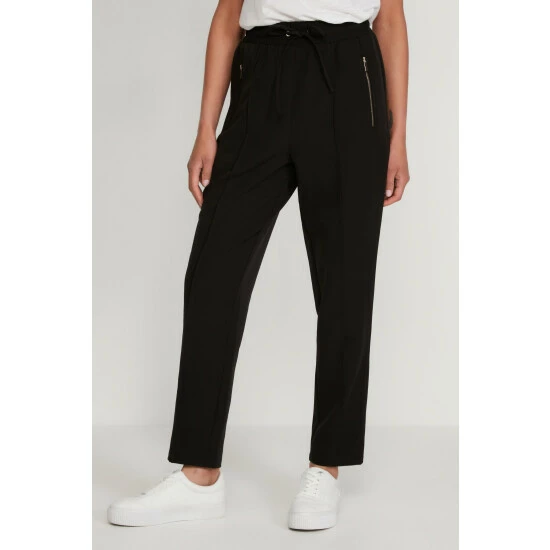 These jogger style trousers feature an elasticated tie waist, side and back pockets, zip detailing and tapered shape. Style with a T-shirt and sandals for stylish, casual look.