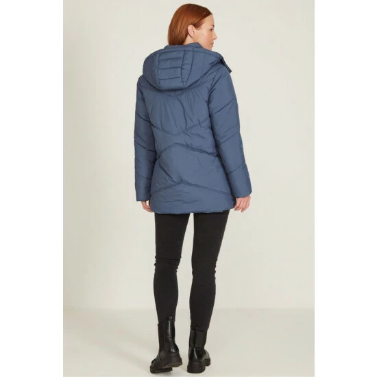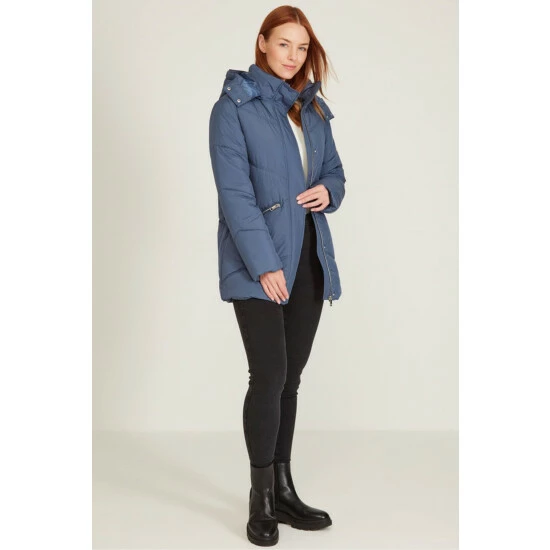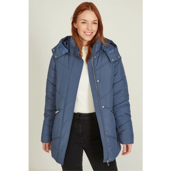 This padded coat features a mid length, zip fastening with additional button closure, zip pockets, cuffed sleeves and quality fabric. Layer over luxe knits and skinnies for a cool off-duty look.