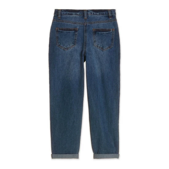 This Mum Jeans is made from 100% cotton featuring 5 pockets, belt loops ,button, functional zip fly with roll up hems, also, machine washable. Perfect combination with any sweats tops or T-shirts.