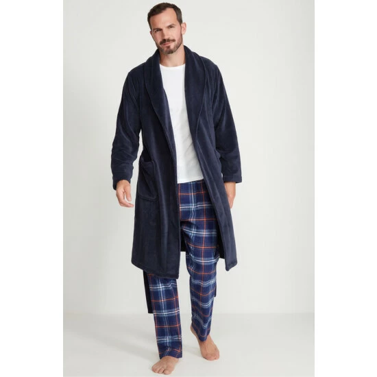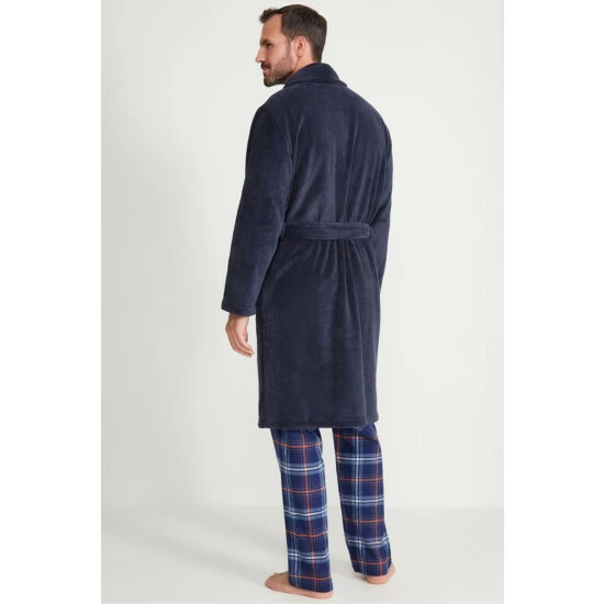This fluffy navy blue robe is constructed with belted fastening and long sleeves for a secure fit, it features two pockets for secure storage.