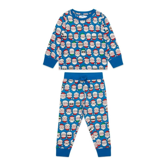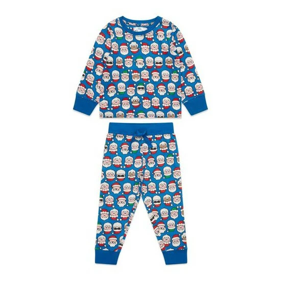 Get ready for Christmas morning with this festive pyjama set, decorated with an all-over santa face print. Cut with full length trousers, long sleeves and a crew neckline.