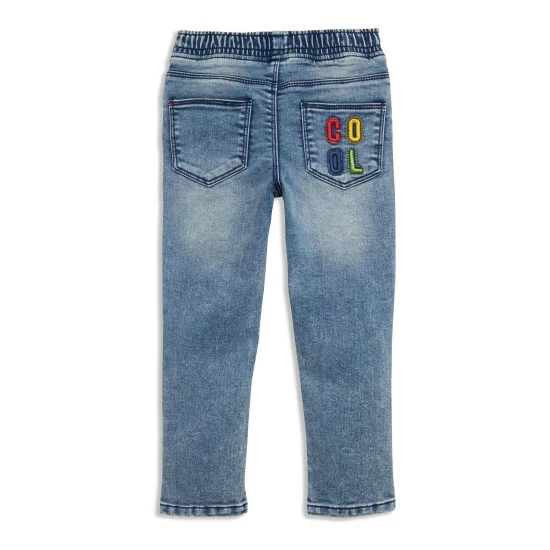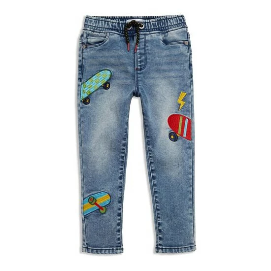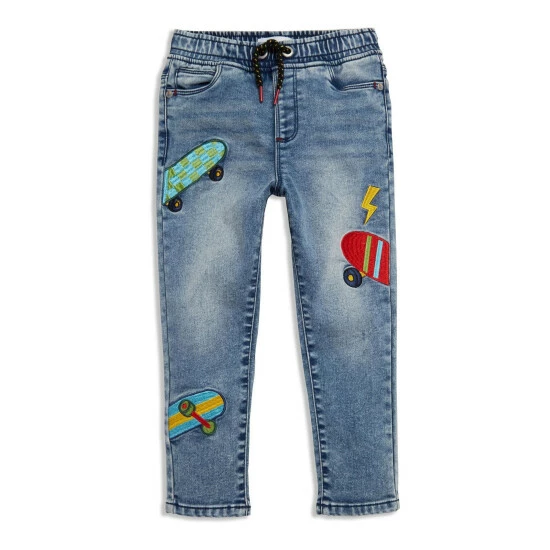 These jeans feature an elasticated ribbed waist, drawstring, side pockets, back pockets and skateboard motif embroidery. Pair with any T-shirt and trainers for a super cute everyday look.
