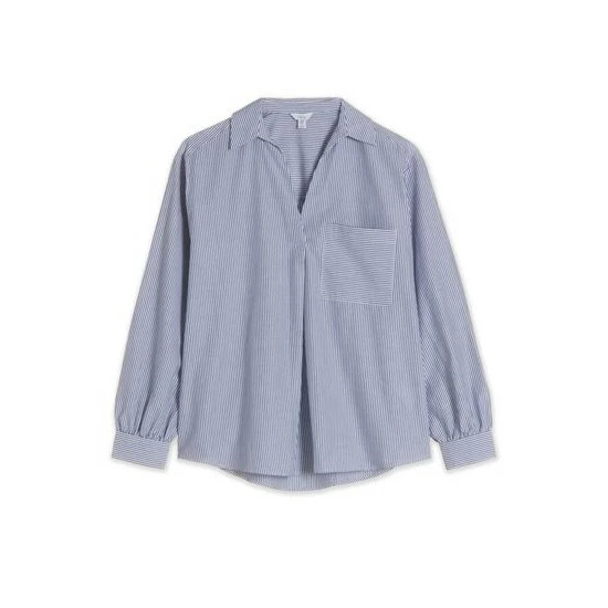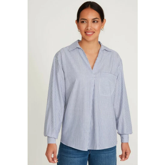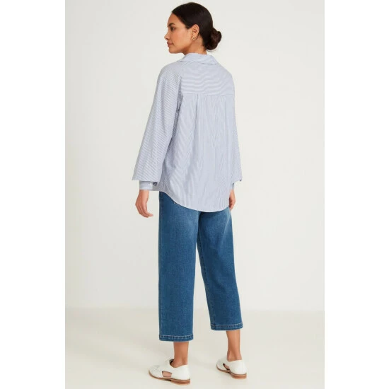 Smarten up your wardrobe this season with this blue stripe shirt. Featuring a comfortable fit with a collared neckline and button-through fastening. Style with jeans and a black boot for a trendy twist on a classic look.