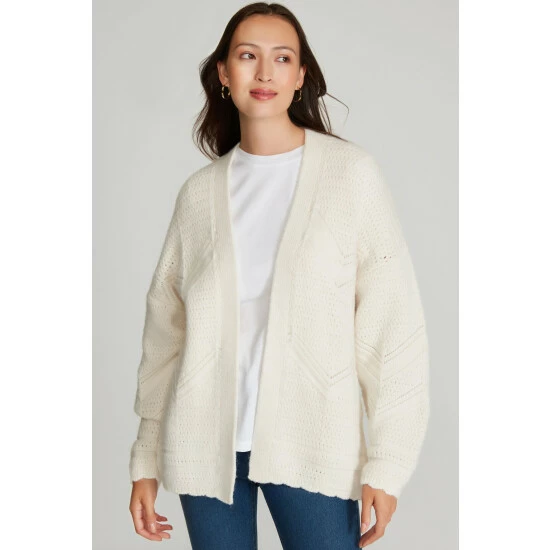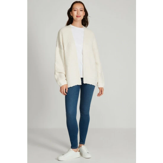 Stay warm and cosy this season with this cream long sleeve textured cardigan. Perfect for layering over a T-shirt with your favourite jeans for an everyday look.