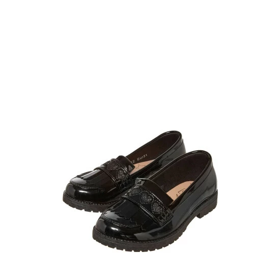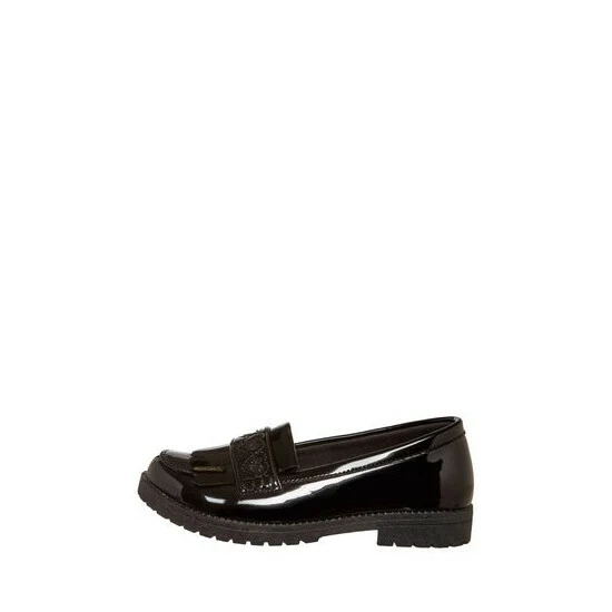 This Girls Patent Loafer Shoes features heart shape design makes a fashionable addition to her wardrobe. It would be a great addition to her school wardrobe and can be paired with any school outfit.