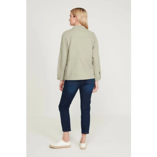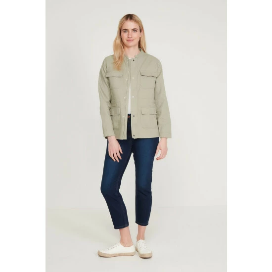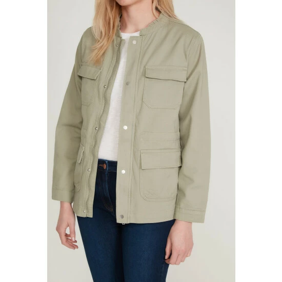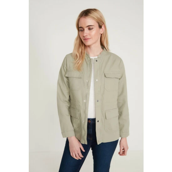 Fusing a shirt and a jacket for the chicest combination, M&Co long sleeve shacket comes in a relaxed silhouette with buttons, a frill collar and utility inspired chest pockets. Featuring a pale khaki finish, this short shacket is a trend led cover up you can’t go without.