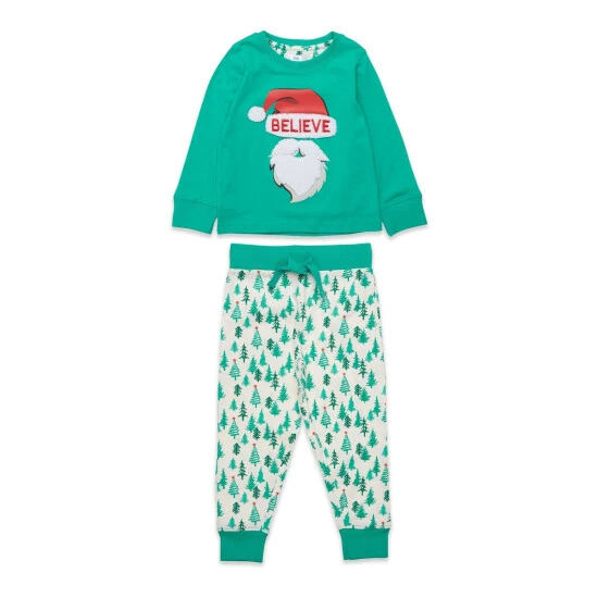 Get ready for Christmas morning with this festive pyjama set, decorated with a Christmas santa motif. Cut with full length trousers, long sleeves and a crew neckline.