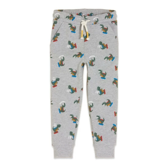 Keep him looking cool and feeling cosy in these comfortable grey marl joggers, designed with a fun dinosaur skateboard print.