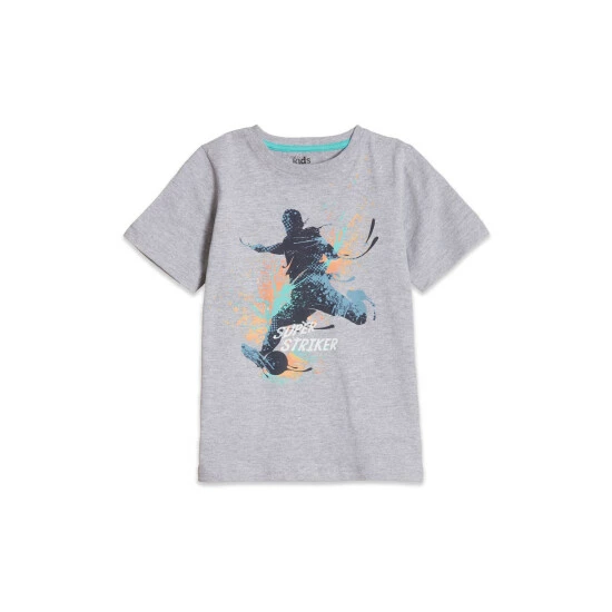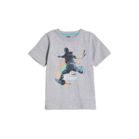 This grey marl T-shirt features short sleeves, a crew neck and super striker football motif.