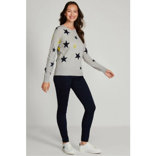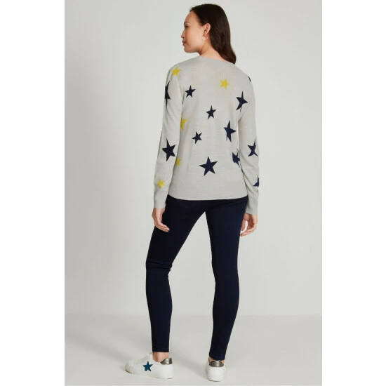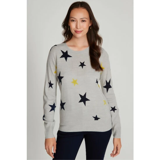 Add some fun to your wardrobe with our new grey star print jumper, designed with long sleeves and a classic crew neck. This piece can be easily styled for everyday wear with jeans and trainers.