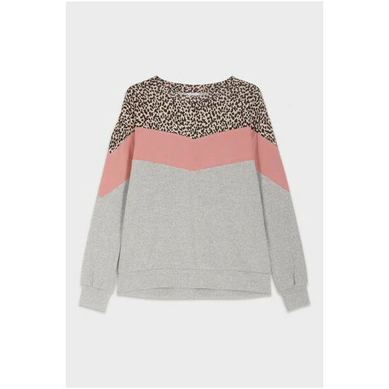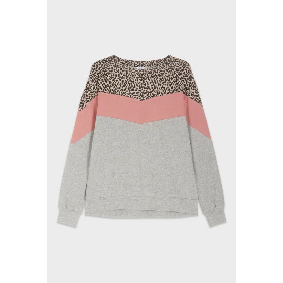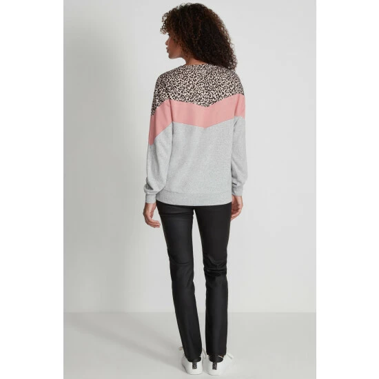 This comfortable sweatshirt is a must-have for every day, designed with long sleeves and a classic crew neck. Featuring a leopard print colourblock design, this is easy to style with your favourite jeans.