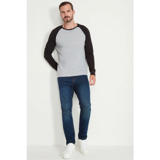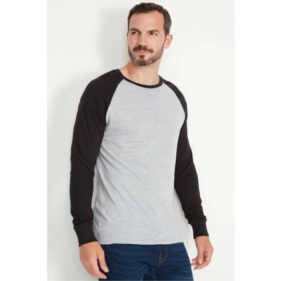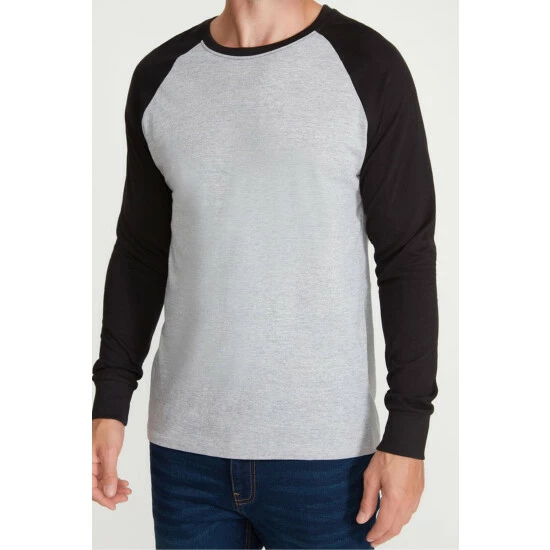 Refresh your wardrobe with this grey marl raglan design T-shirt. Crafted from a soft cotton blend, this top features contrasting long sleeves and a crew neckline, pair with jeans for a laidback look.