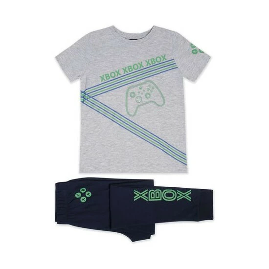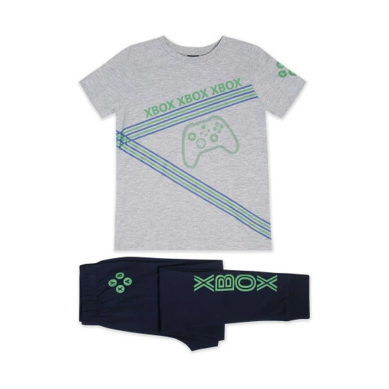 This pyjama set features a short sleeved t-shirt embellished with the Xbox logo and controller and matching printed trousers.