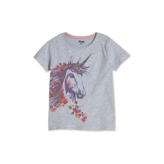 This girls T-shirt has been designed in grey with a unicorn graphic on front, easy for styling with shorts or jeans.