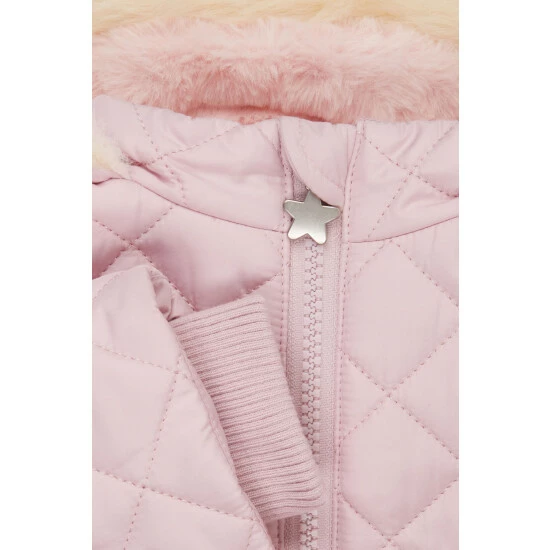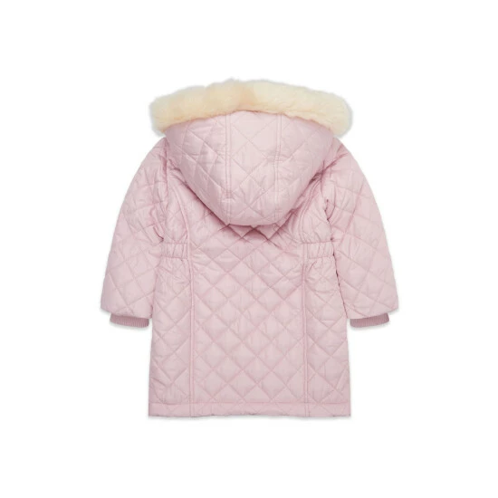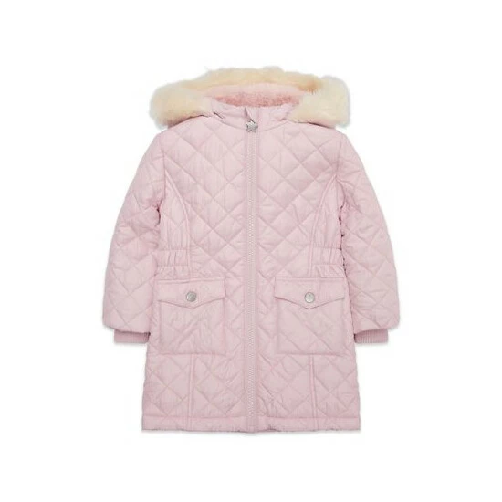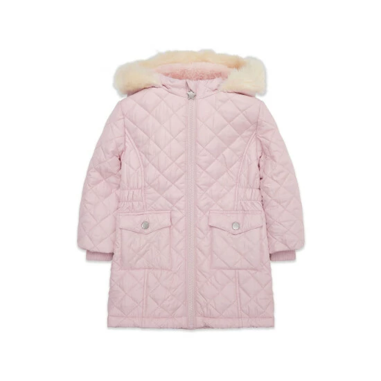 Keep her snug but stylish this season. Featuring a padded design and coming in a super cosy quilted material with front pockets and faux fur trim hood, this new coat comes in a gorgeous pink shade that she will love.