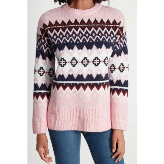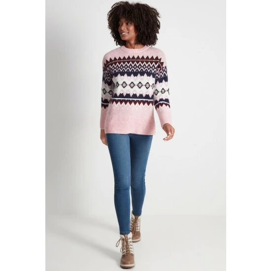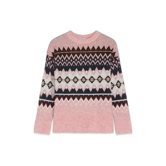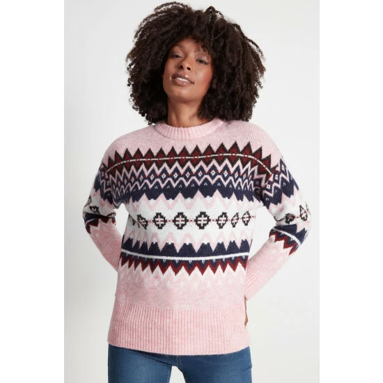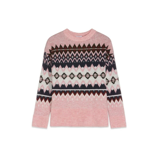 Stay warm and cosy in the cooler months with this long sleeve, crew neck jumper. Designed in a pink Fair Isle pattern, this jumper is easy to style with denim jeans.