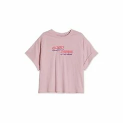 Good vibes only! This pale pink girls T-shirt is made in a soft cotton blend, featuring short turn up sleeves and a ‘good vides’ graphic. Pair with denim shorts and trainers for an easy everyday look she will love.