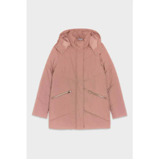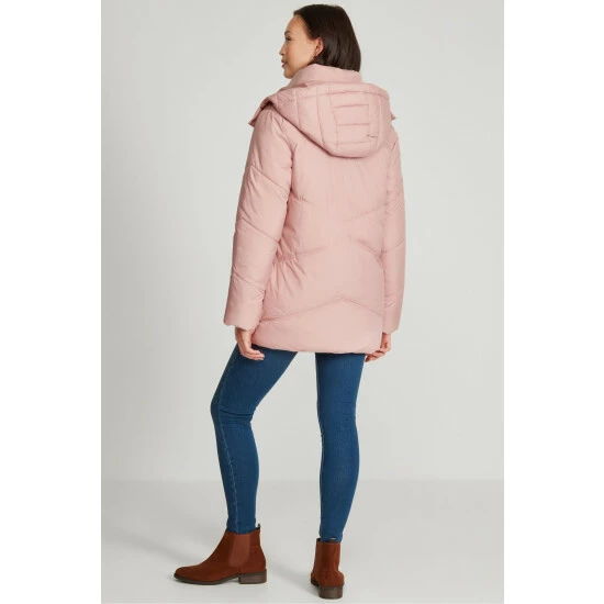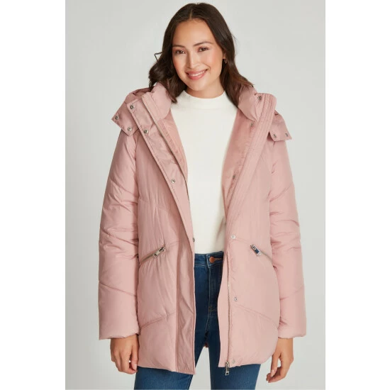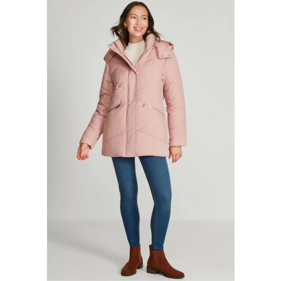 This padded coat features a mid-length, zip fastening with additional button closure, zip pockets, cuffed sleeves and quality fabric. Layer over luxe knits and skinnies for a cool off-duty look.