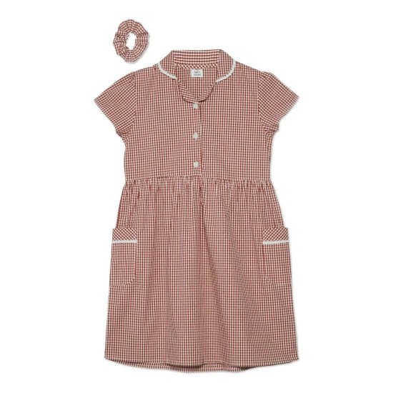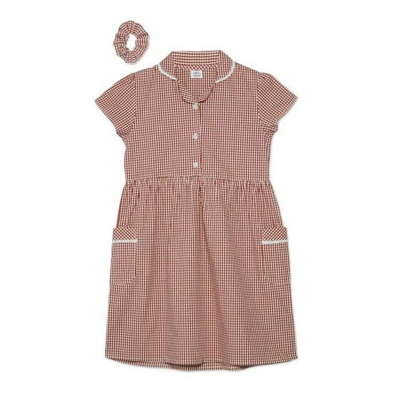 Get her back to school ready with this cute gingham dress. In a check design featuring short sleeves, button detailing, pockets and a matching hair scrunchie, she will be the smartest dressed in the class.